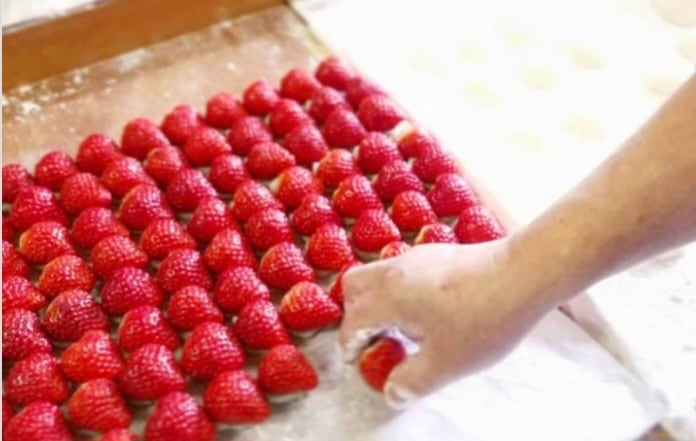 厳選した国産いちごを使用し、その日のうちに手作りしております。ひとつずつ心を込めて作り上げたこのいちご大福は、特別な日の贈り物にも最適です。